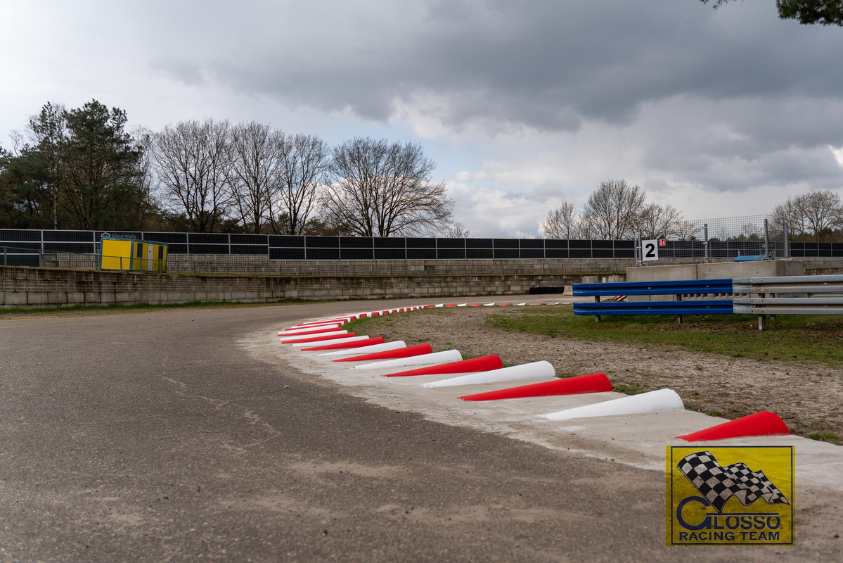 Van de geluidswand zijn de laatste passtukken gemonteerd. Schilderen lijnen aan start en finish, ook de curbstonens zijn reeds op kleur. Container welke als brug over de uitrit dienst gaat doen ook al geschilderd. Sponsordoeken opgehangen en omheining voor het publiek terug geplaatst.